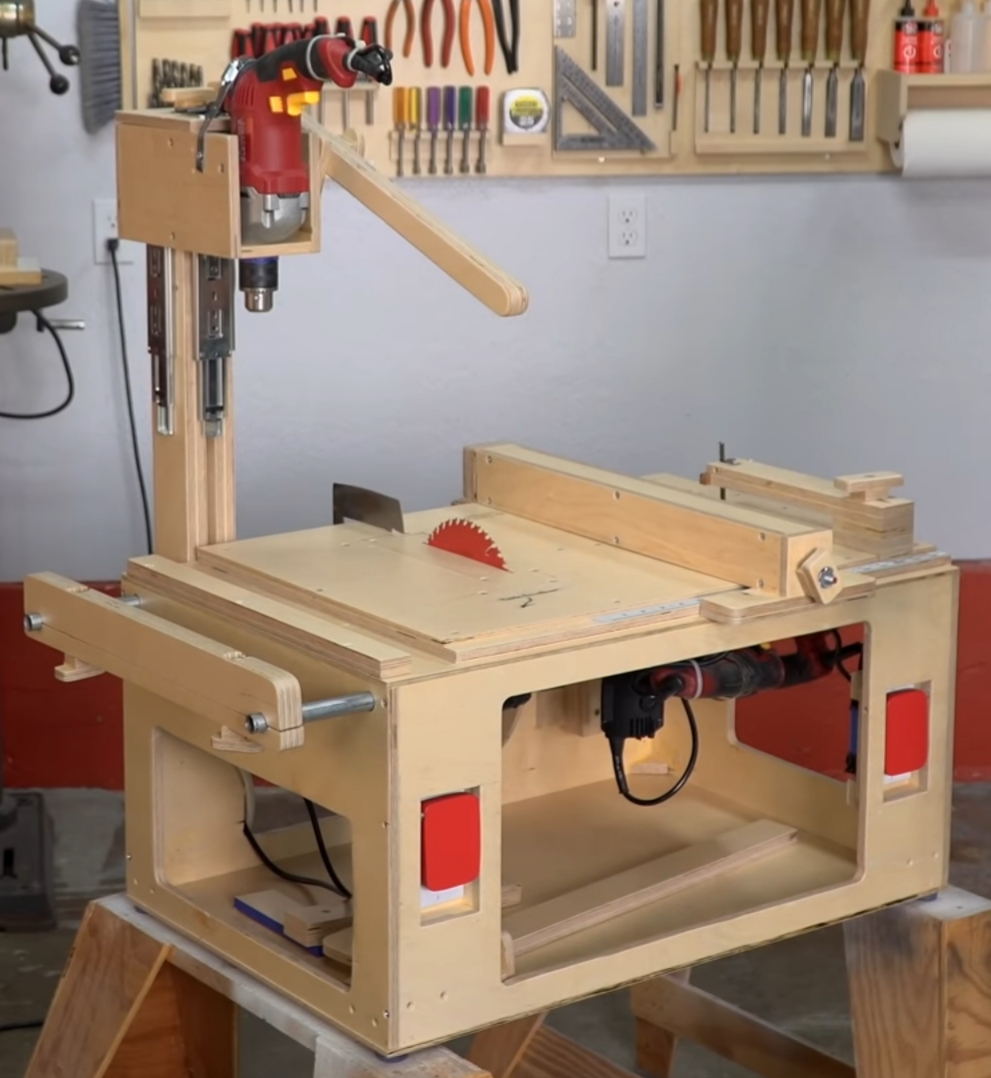 I have been doing woodwork projects using some basic tools drill, circular saw, jacksaw, etc. Now I want to build a custom workbench with a bench saw, drillpress, table router, and some other tools. The bench also needs to be small, since I have limited space to work. I think I found what I want to build on the One Minute Workbench YouTube channel.